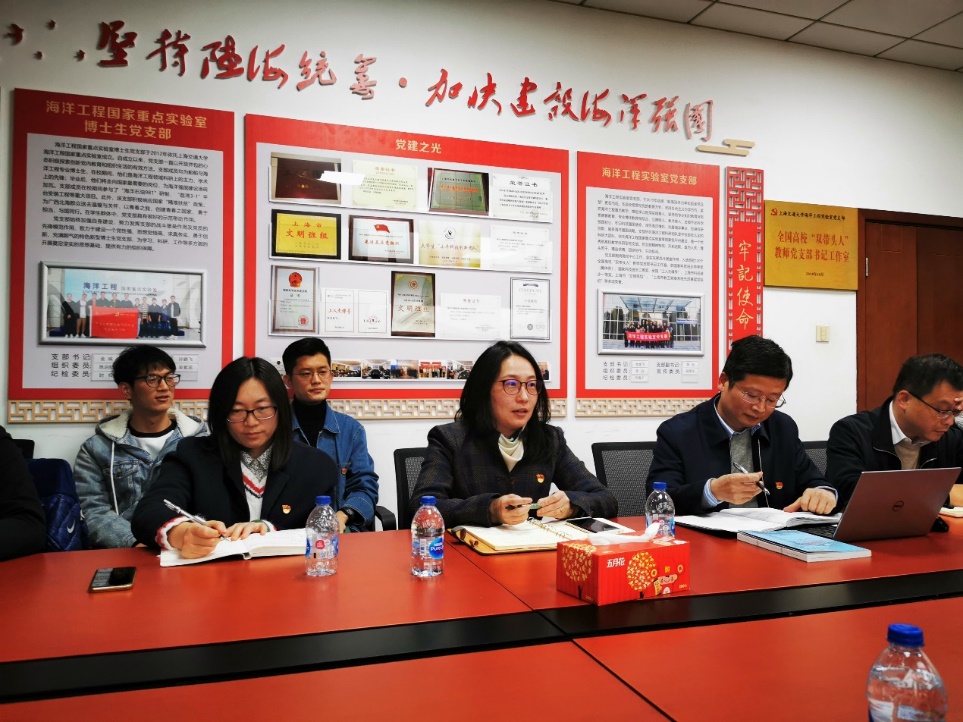 党课学习后,博士生党支部副书记孙鹏飞汇报了学生党支部在伴随实验室发展的过程中,充分发挥党支部的核心堡垒作用,形成了立志笃行、凝心聚力的精神,在海洋工程实验室老师带领下取得了显著成绩。他认为,作为博士生党员,应努力攻克船舶与海洋工程领域的重要科研难题,用实事求是、不怕苦不怕累的精神武装头脑,将党支部变成一个思想武装高科技人才的基地,努力为发展国家船舶与海洋科学贡献更大的力量。
