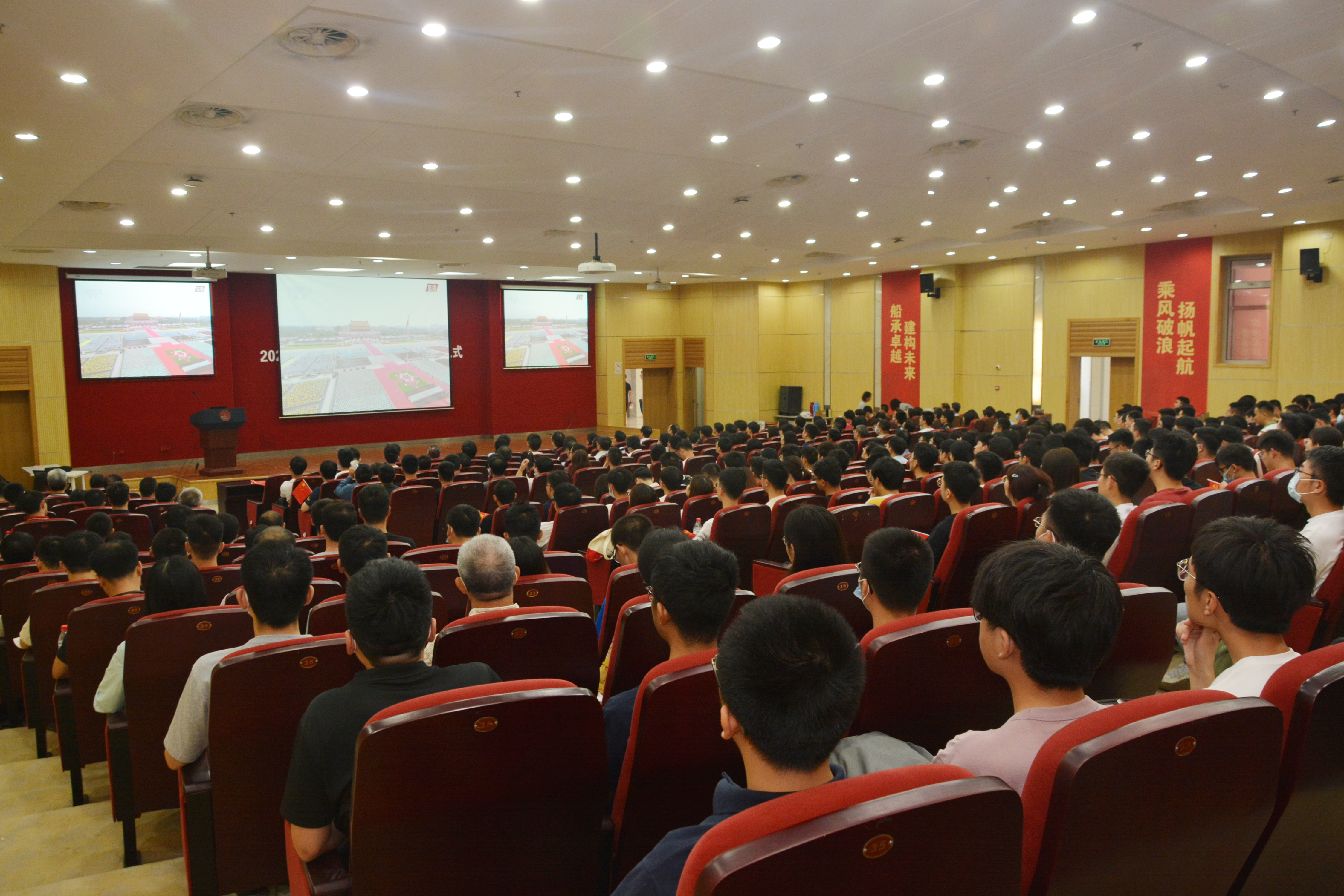 鲜艳的旗帜、庄严的场景、嘹亮的合唱、热烈的氛围,感染着每一位船建师生。大家聚精会神、目不转睛地观看直播盛况,感怀中国共产党100年来的光辉历程和取得的历史性成就、发生的历史性变革。大家纷纷表示要深刻学习贯彻习近平总书记重要讲话精神,牢记总书记的嘱托,听党话、跟党走、知党恩,胸怀大志,把理想信念坚守于心;脚踏实地,把过硬本领练就于身,坚守初心使命,为党和国家的事业奉献智慧和力量,使我们党不断从胜利走向新的胜利。