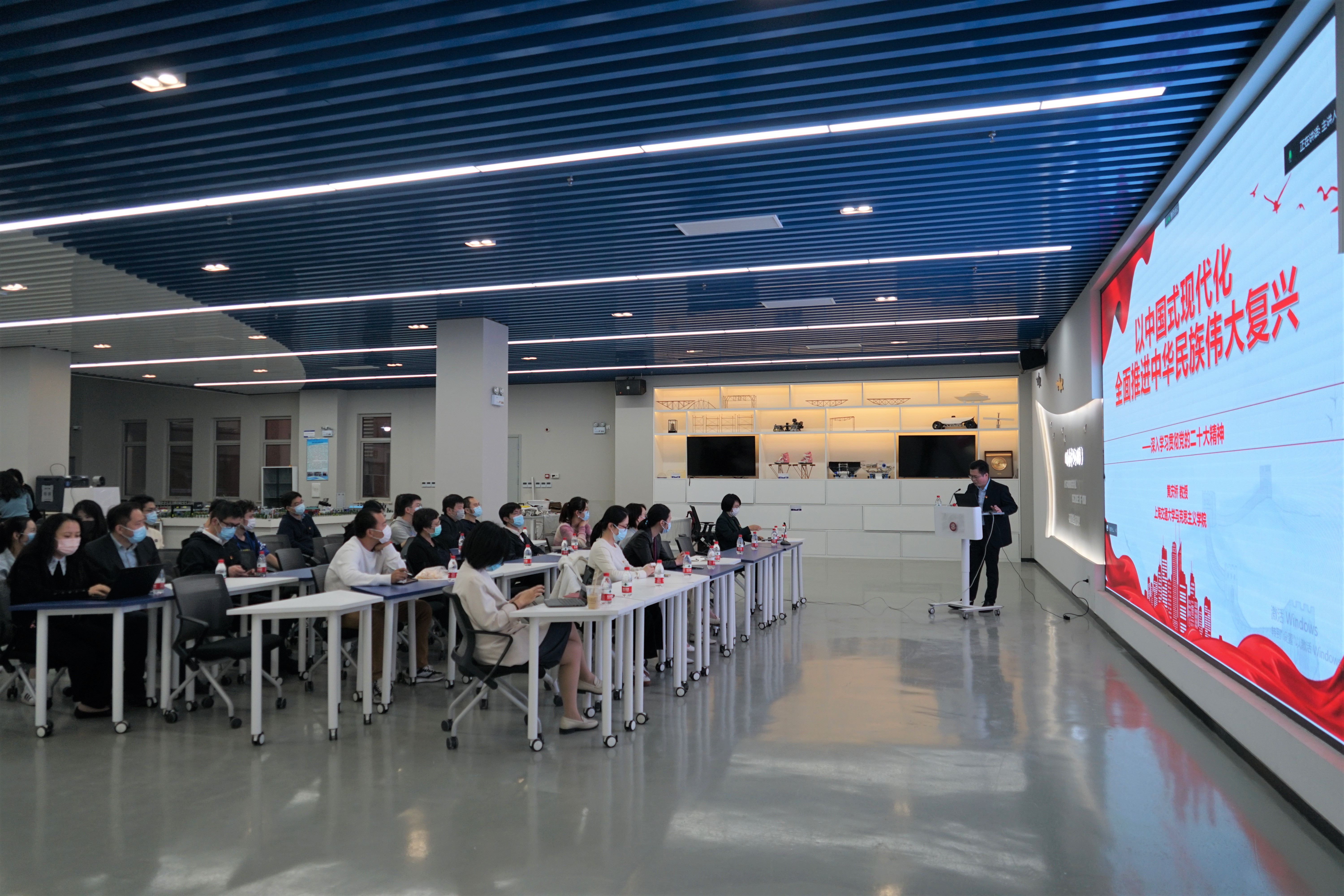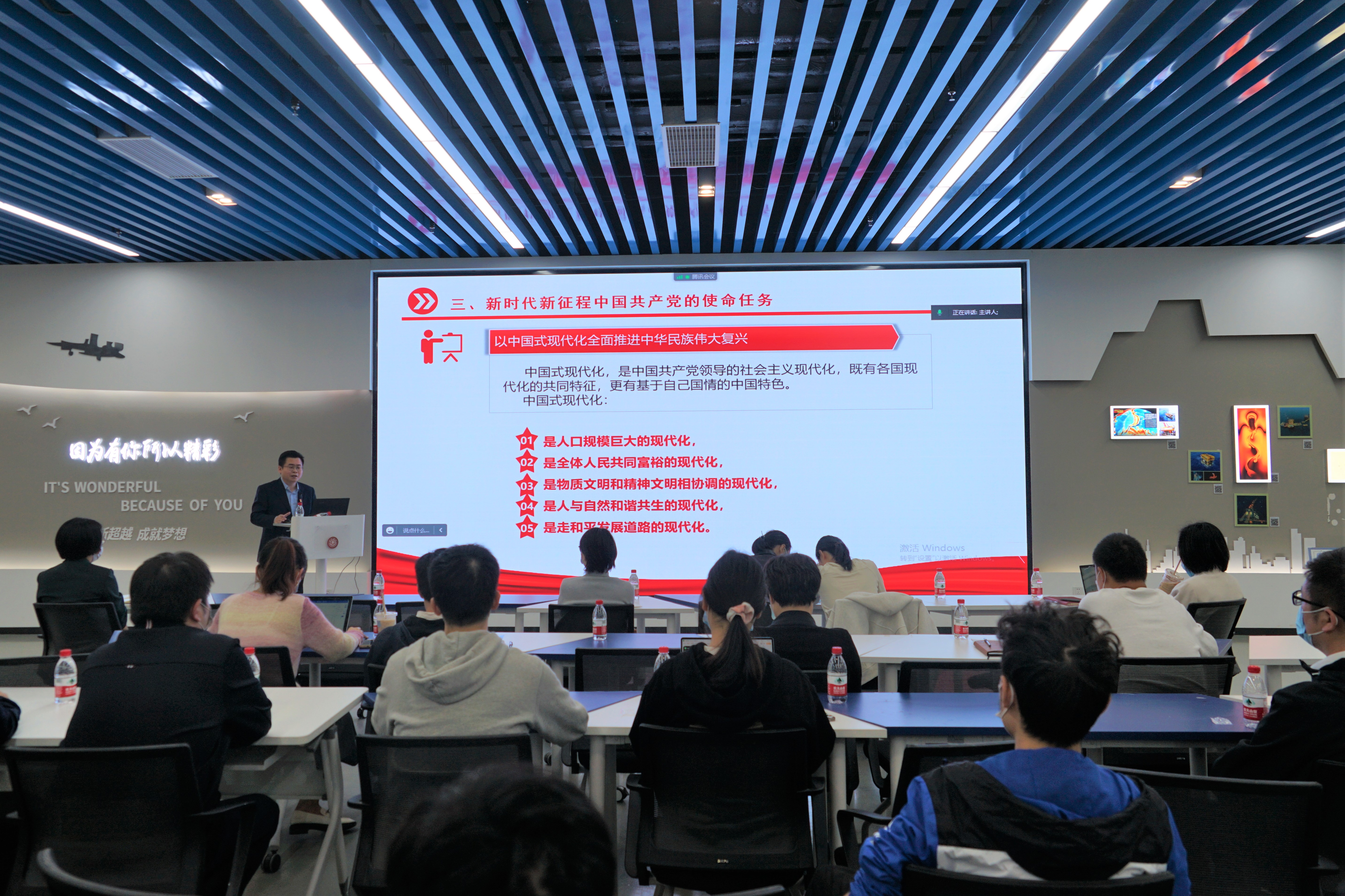 黄庆桥教授首先带领大家深入浅出地解读党的二十大报告的主体内容,报告指出,“从现在起,中国共产党的中心任务就是团结带领全国各族人民全面建成社会主义现代化强国、实现第二个百年奋斗目标,以中国式现代化全面推进中华民族伟大复兴。”党的二十大全面把握党和国家事业发展新要求、人民群众新期待,明确提出了新时代新征程中国共产党的中心任务,发出了为全面建设社会主义现代化国家、全面推进中华民族伟大复兴而团结奋斗的动员令。
