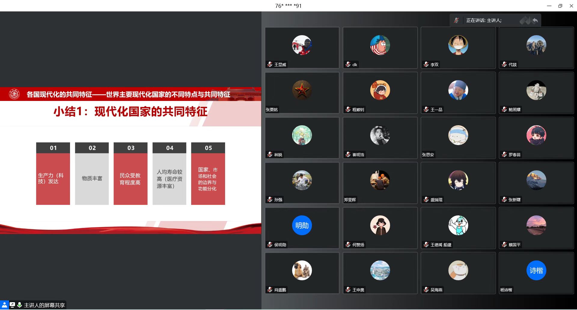 随后,黄庆桥教授聚焦“以中国式现代化全面推进中华民族伟大复兴”这一重点,从各国现代化的共同特征、为什么不能照搬西方模式、中国式现代化之路和中国式现代化深刻影响了世界历史进程四个方面进行分享。他指出,中国式现代化拓展了发展中国家走向现代化的途径,展现了世界社会主义的光明前景,创造了人类文明新形态。最后,他总结党的百年历史给我们的启示“承前启后,继往开来,一脉相承,与时俱进,接续发展,守正创新。”