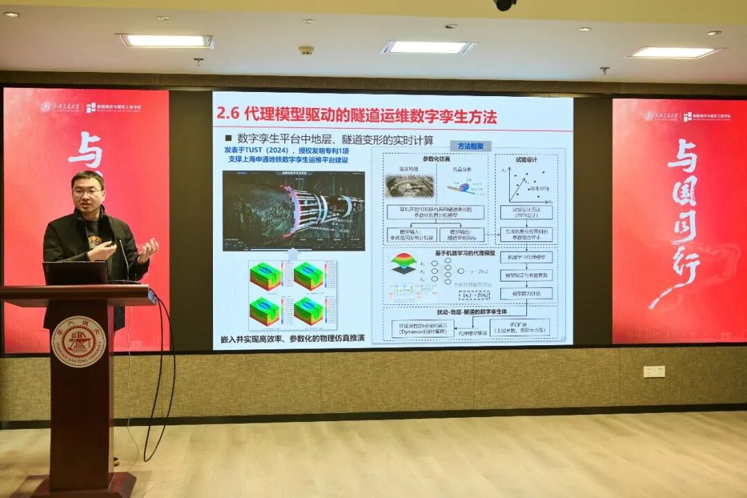 在科研交流环节,成人漫画 长聘教轨副教授艾青带来《隧道工程智能运维:装备、技术与理论方法》专题报告。艾青系统介绍了智能检测装备、人工智能驱动的识别技术、以及数据与物理模型融合的预测诊断方法等内容,并结合实际工程案例,分享了研究团队在隧道智能运维领域的最新成果。
