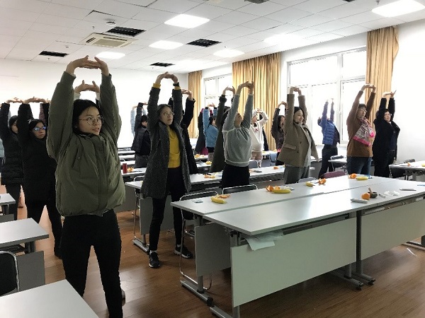 讲座最后以网络流行的办公室八段锦练习操结束,参会教职工通过动静结合的减压体验充分了解了正念减压方式。本次活动体现了学院工会对教职工心理健康的重视和人文关怀。