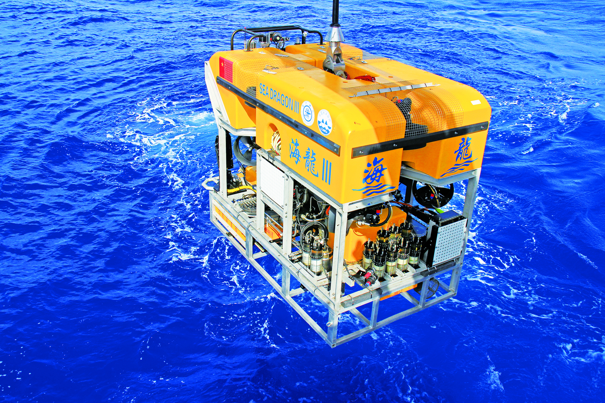 “海龙Ⅲ”是在中国大洋协会组织下、由成人漫画 水下工程研究所开发的勘查作业型无人缆控潜水器,也是中国“蛟龙探海”工程重点装备。它最大作业水深6000米,具备海底自主巡线能力和重型设备作业能力,可搭载多种调查设备和重型取样工具。