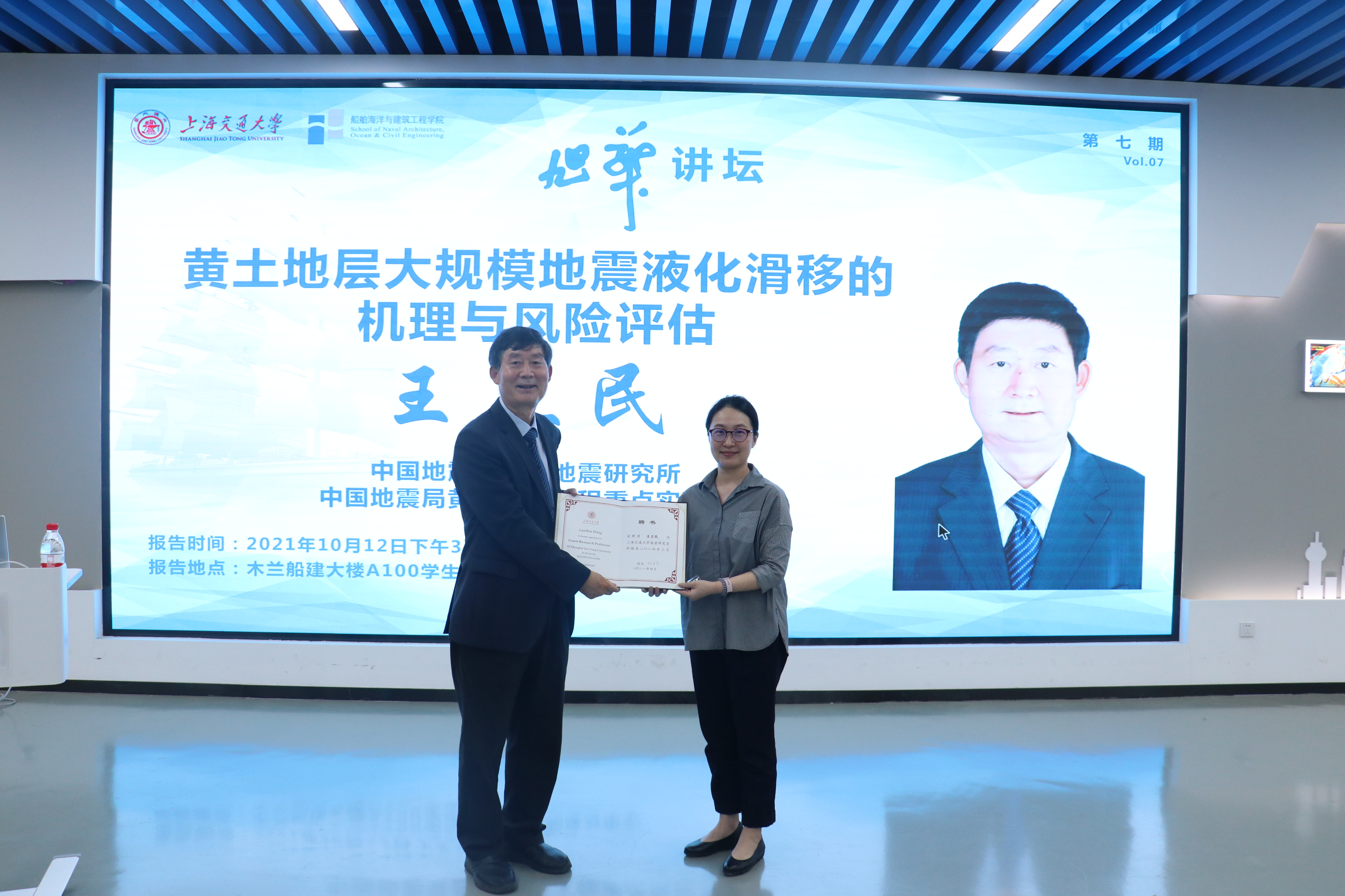10月12日下午,成人漫画 客座研究员受聘仪式在木兰船建大楼举行,原甘肃省地震局局长王兰民研究员受聘成人漫画 客座研究员,并做客成人漫画 第七期“旭华讲坛”,为船建师生带来题为“黄土地层大规模地震液化滑移的机理与风险评估”的精彩报告。会议由土木工程系主任陈锦剑主持。