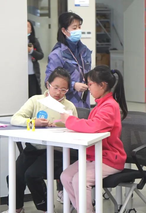 在“鸡蛋保卫战”中,“交小苗”们充分发挥聪明才智,用A4纸设计鸡蛋的“保护罩”,并进行自由落体实验。
