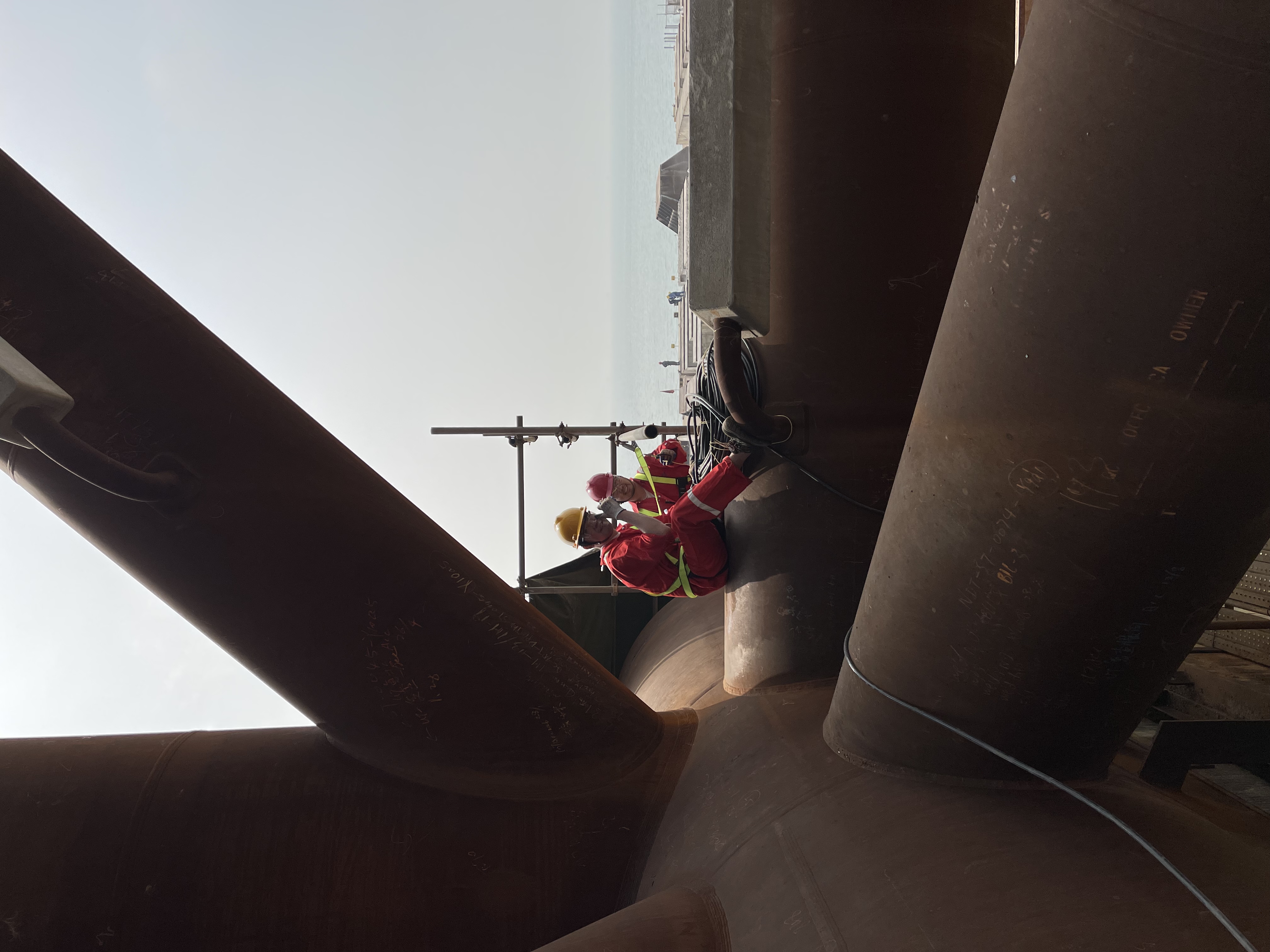 实测团队将调试工作前置,开发了无人化、远程化的监测技术,实现了岸上远程调试及海上设备快速启动的联动模式。在与海油工程的紧密合作下,一周内完成监测方案,一个月内完成设备研制,两个月内完成设备安装和调试。春节期间在珠海福陆重工建造场地完成设备安装调试工作,疫情期间完成全系统软硬件远程调试。