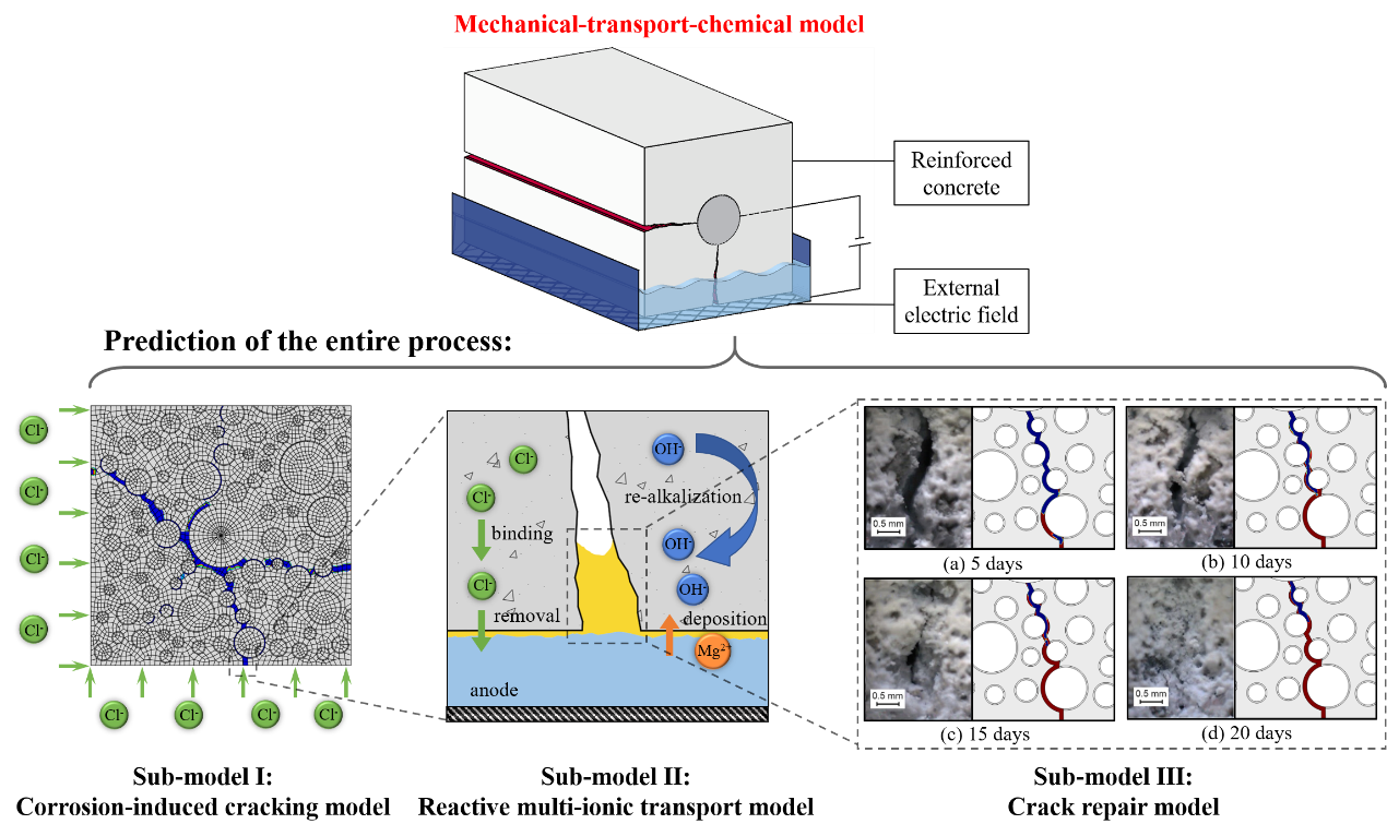 近期,成人漫画 土木工程系2020级硕士研究生孟昭铮在钢筋混凝土结构电化学修复机理研究及全寿命周期预测上取得创新性成果。相关成果以“Mechanical–transport–chemical modeling of electrochemical repair methods for corrosion-induced cracking in marine concrete”和“Electrochemical deposition method for load-induced crack repair of reinforced concrete structures: A numerical study”为题分别发表于土木工程领域顶级期刊《Computer-Aided Civil and Infrastructure Engineering》和结构工程领域标志性刊物《Engineering Structures》(均为交大A档期刊)。两篇论文的第一作者为孟昭铮,通讯作者为其导师刘清风教授。