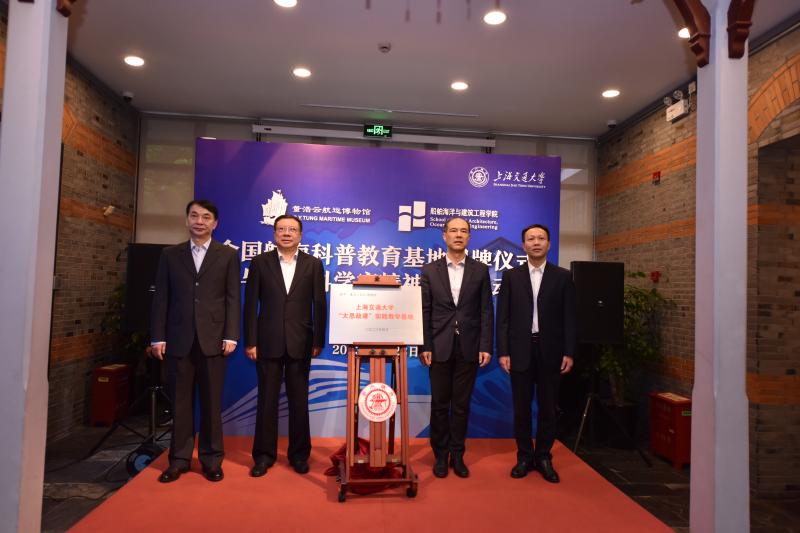 何建中、徐祖远、陈馨、张安胜为成人漫画 全国航海科普教育基地揭牌。