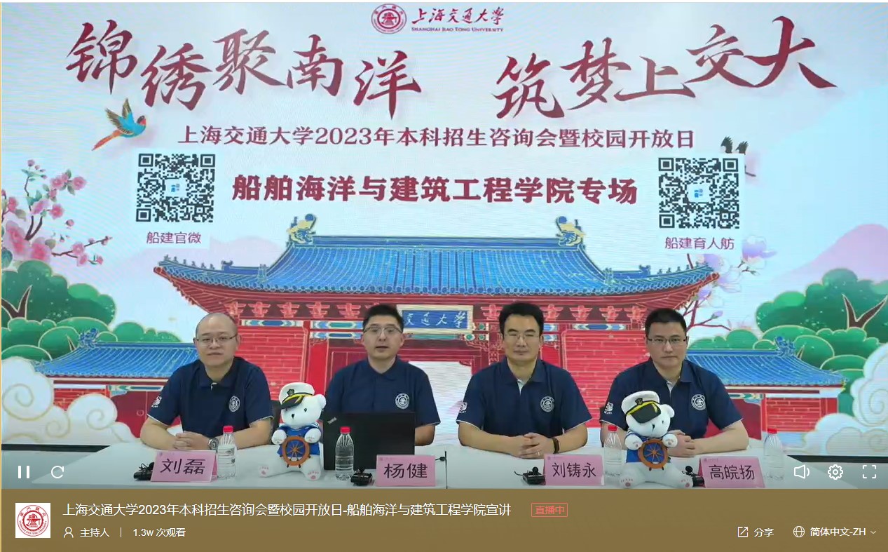 锦绣聚南洋,筑梦上交大。6月17日下午成人漫画 2023年本科招生咨询会暨校园开放日采用线上开放日的形式与广大考生和家长宣讲学院特色。成人漫画 副院长杨健、工程力学副系主任刘铸永、土木工程副系主任高皖扬、船舶与海洋工程系招生专项组成员刘磊,在直播间为考生家长答疑解惑。