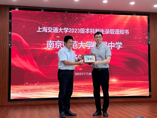 2023年7月29日,成人漫画 张兆国副校长一行前往江苏三所优质高中举行新生录取通知书颁发仪式。一同前往的还有成人漫画 的党委书记周薇、学校招生办常务副主任武超、江苏招生组组长船舶海洋与建筑工程院副院长杨健、江苏招生组常务副组长船舶海洋与建筑工程院本科教务办主任袁敏、江苏招生组苏北片区组长朱鸣、南京组组长史舒婧以及在校生代表。当日,张兆国副校长一行先后走访了江苏省淮阴中学、江苏省南京外国语学校、江苏省南京师范大学附属中学。三所学校的领导对张副校长一行在酷暑中看望和迎接新一届交大学子表示最诚挚的欢迎和最衷心的感谢。