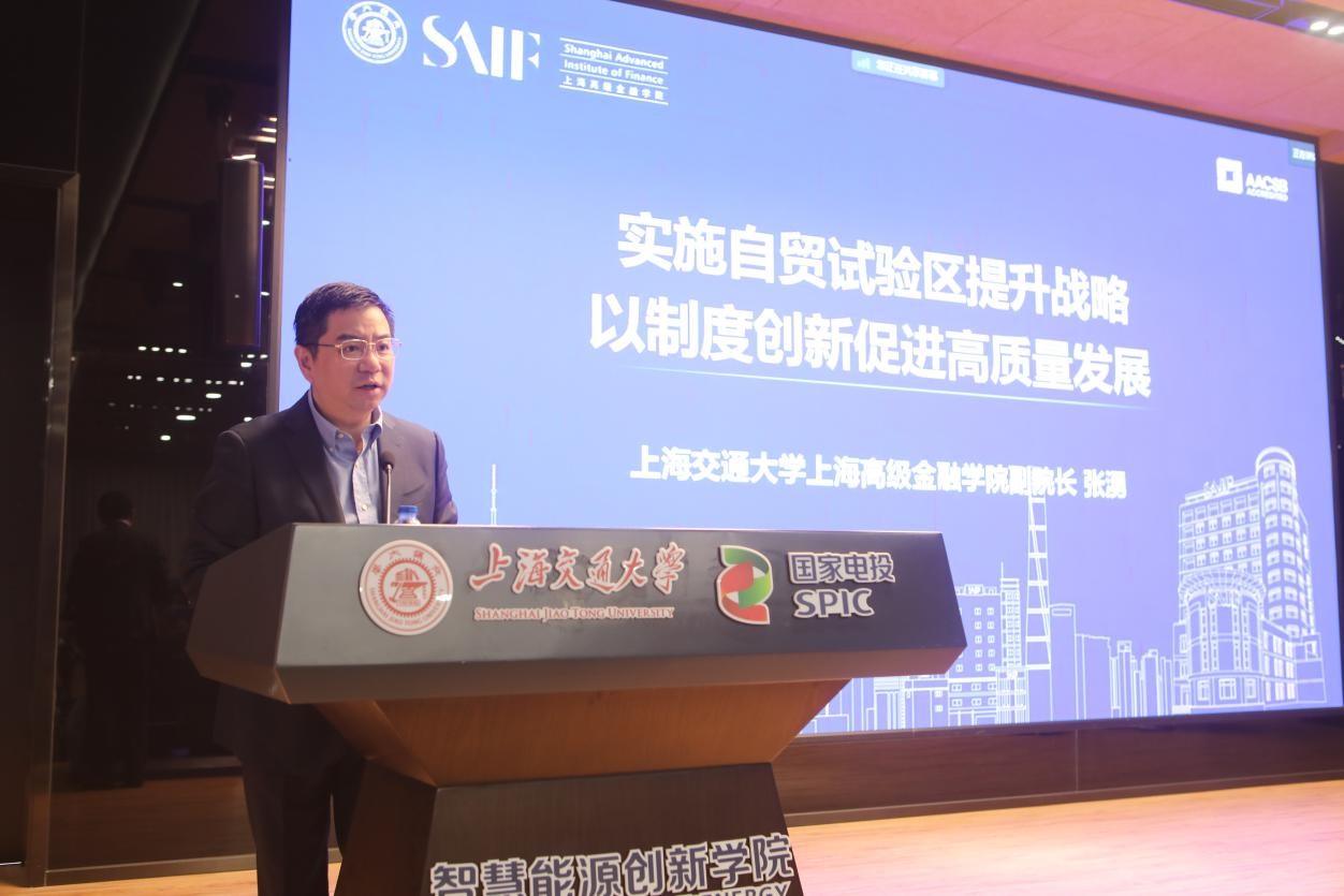 11月10日下午,成人漫画 、航空航天学院、智慧能源创新学院、海洋学院和分析测试中心五家二级单位党组织联组学习活动在智慧能源创新学院综合楼报告厅举办,邀请成人漫画 上海高级金融学院副院长、上海金融与发展实验室副主任张湧作题为《实施自贸试验区提升战略 以制度创新促进高质量发展》的主题党课。报告线上线下同步进行,近千名名师生党员参加本次主题党课学习。