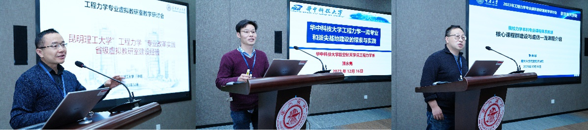 交流报告阶段,北京大学荣起国、浙江大学赵沛、成人漫画 刘铸永、南京理工大学章定国、北京理工大学赵颖涛、西北工业大学邓子辰、昆明理工大学、华中科技大学熊永亮、重庆大学张晓敏分别对本校工程力学专业建设、人才培养、课程设计、虚拟教研室、师资队伍以及知识图谱建设等方面进行了详细介绍,并与参会教师展开了深入的交流。