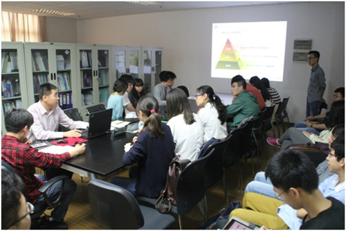 双方互相交流了各自对BIM的认知及研究方向,同济BIM菁英俱乐部副主席张文津为大家介绍同济BIM菁英俱乐部的组织架构和发展历程:该俱乐部隶属于同济大学就业指导中心及土木工程学院,是基于对BIM技术的兴趣自发组建的学生组织。上海交大BIM研究中心博士研究生赖华辉则简要介绍了上海交大BIM研究中心的组织架构,分享了研究中心自2015年3月到现阶段的活动开展情况,包括BIM软件培训、BIM研讨会、企业调研等。