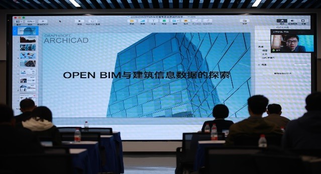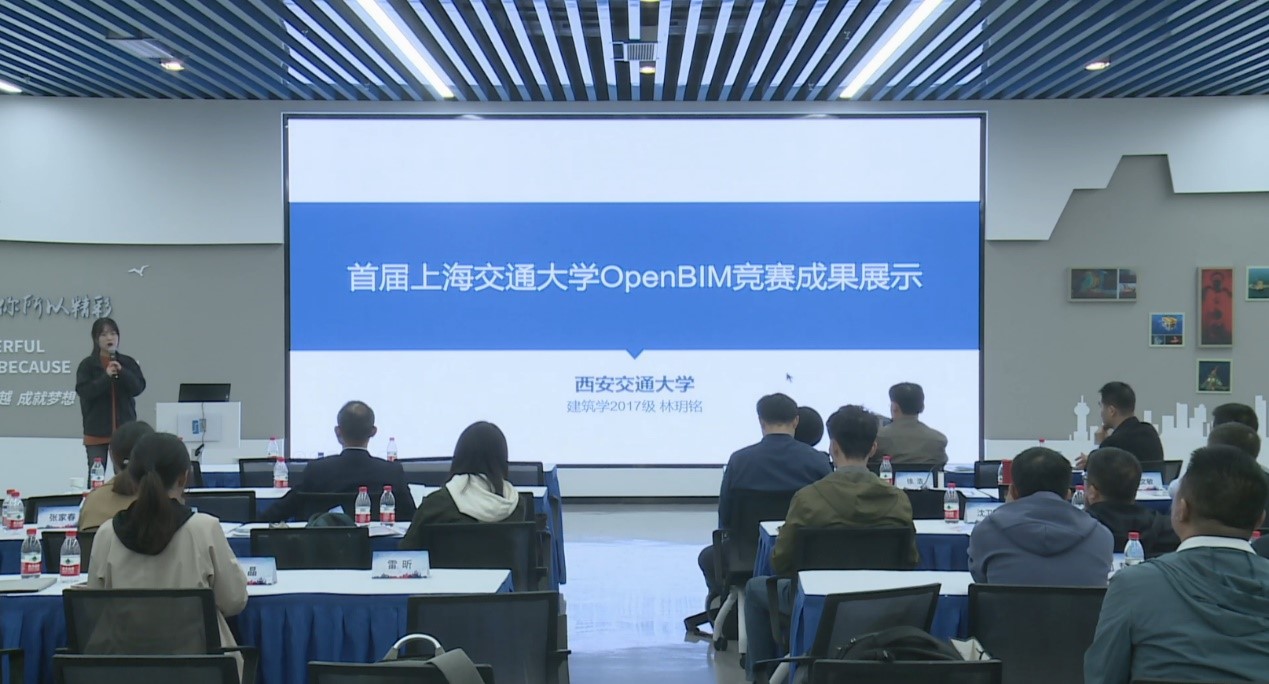 下午的学术交流活动由张家春主持。在分享环节上,首届上海交大OpenBIM设计作品竞赛一等奖获奖团队代表成人漫画 的王晶和李世凯同学、西安交通大学的林玥铭同学、西南交通大学的雷昕同学分别以本组参赛项目为例,展示了在OpenBIM竞赛中的成果,分享使用OpenBIM技术进行协同设计的理解和感悟。三组代表都对天磁NMBIM协同设计平台在多专业协同设计中所起的作用进行了详细的描述,并对NMBIM自主研发的NMI数据格式表示了极大的兴趣。同学们表示,在利用NMBIM将IFC文件转换为NMI文件后,模型的打开速度提升了5-10倍,大大提高了多专业协同的效率。