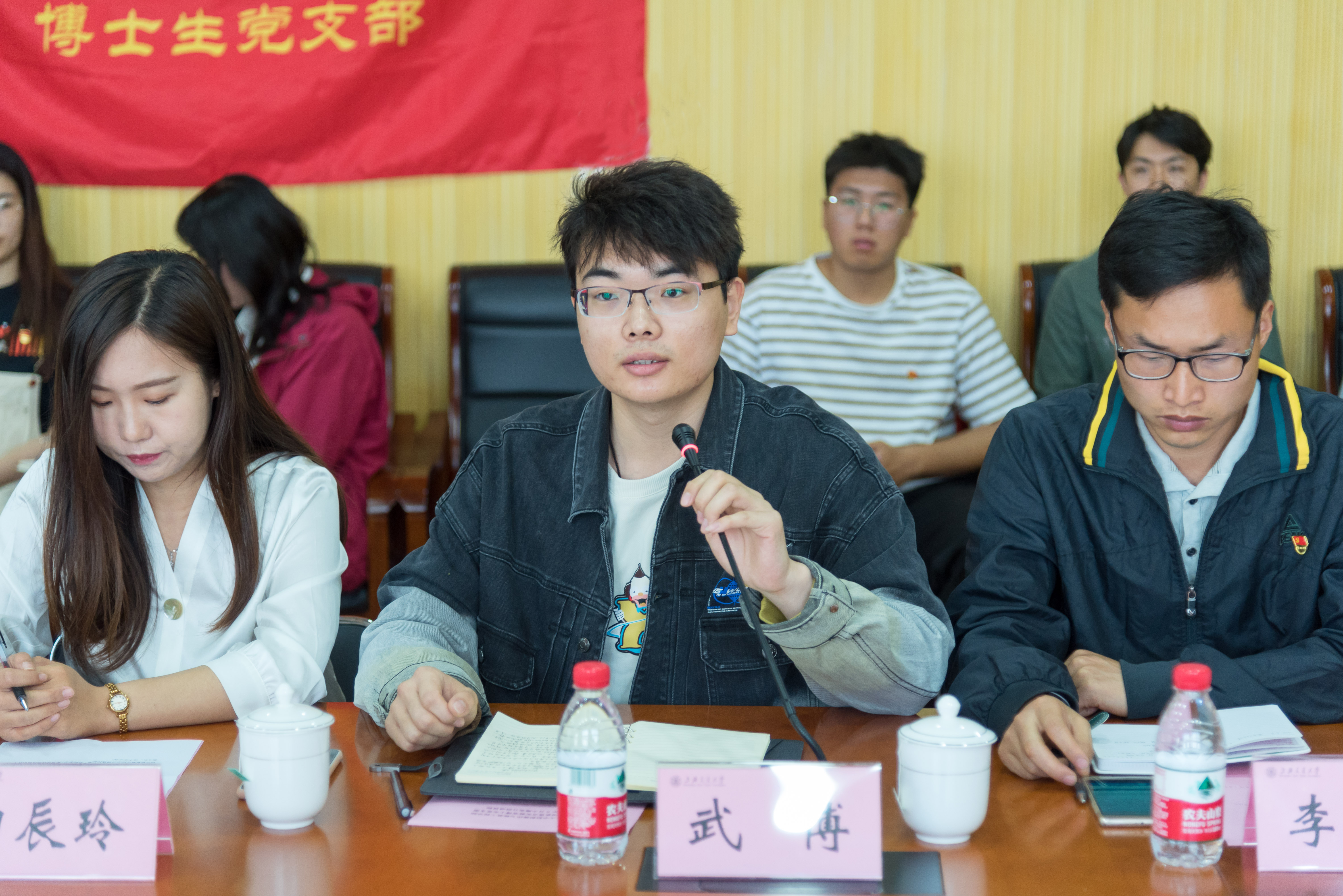 随后,在支部书记金城的带领下,与会师生们共同学习了习近平总书记4月19日在清华大学考察时的重要讲话精神。支部同学纷纷围绕总书记的讲话精神,结合“拼搏奋斗勇于创新,立志奉献海洋强国”的主题,交流了自己学习总书记重要讲话精神的心得和体会。李旭同学结合自己的学生工作经历,和大家分享了他对“将海洋行业的振兴和个人的理想信念结合起来”这一话题的理解和感悟。辛紫蕊同学从自身的日常科研学习出发,从扎根理想信念、保持优良作风、促进全面发展三个方面交流了自己学习总书记讲话的体会。武博同学作为支部的入党积极分子,也从“当代青年生逢盛世,肩负重任,船建学子要立志奉献海洋强国的伟大事业”的角度,和大家交流了他的学习心得。