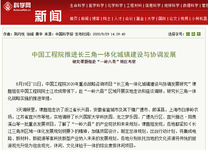 【科学网】中国工程院推进长三角一体化城镇建设与协调发展,研究课题组赴“一岭六县”地区考察