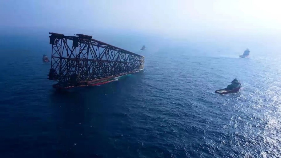 【央视新闻】我国首次获得300米级超深导管架下水轨迹实测数据