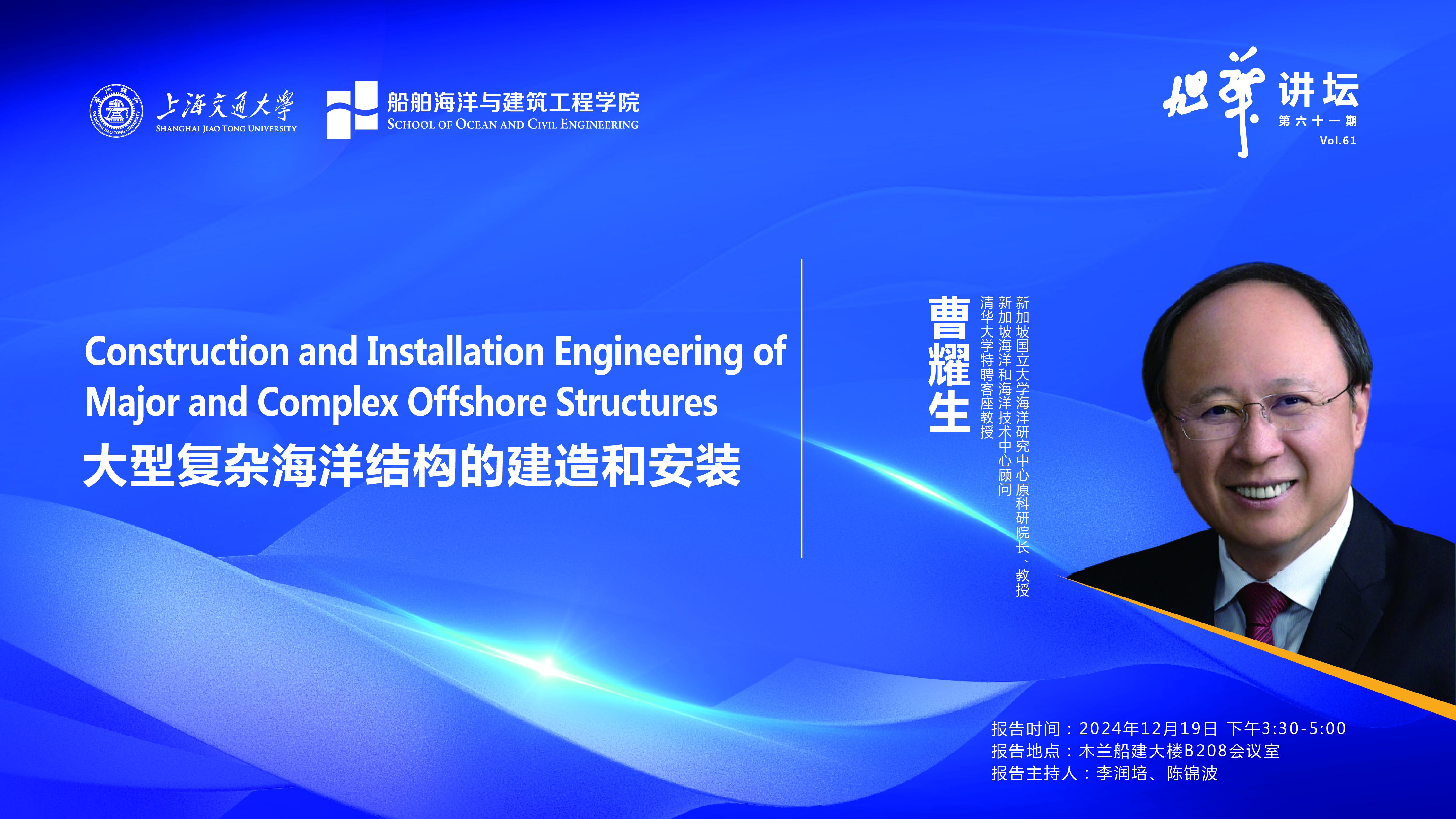 The global demand for energy is significantly supported by developments in offshore oil & gas and renewables. The speaker has contributed directly to offshore engineering practice since early 1990s through research and development, and provision of expert advice to construction and installation of some major structures. His research team has investigated the complex responses of lift system, lift components and knowledge-based engineering design system for heavy lift.