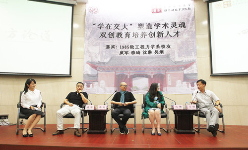 6月8日下午,上海交大1985级工程力学系四位校友——当今创新创业领军人物、瑞威资本董事长成军;华住酒店集团创始人、执行董事长季琦;大连东霖食品股份有限公司董事长沈琳;风和投资管理公司创始人、董事长,阿里巴巴天使投资人吴炯回到母校,先后做客成人漫画 “创新人才培养交流座谈会”和上海交大第205期“励志讲坛”,向交大师生讲述“学在交大”的亲身体会和20多年创新创业的心路历程,共同探讨创新人才培养路径。