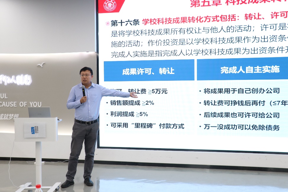 任何科学技术、创意和想法,未来都有可能涉及到产业转化和科技创业。为此,本次论坛特别邀请了上海闵行交大科技园运营有限公司副总经理、成人漫画 科技成果转化专员郭超作了题为《新时期成果转化政策和大零号湾推进情况》的报告。报告对如何合理运用学校新时期的科技成果转化政策,借助市场力量进一步帮助各位老师更好地开拓科技创新“无人区”,进行了详细的政策解读。