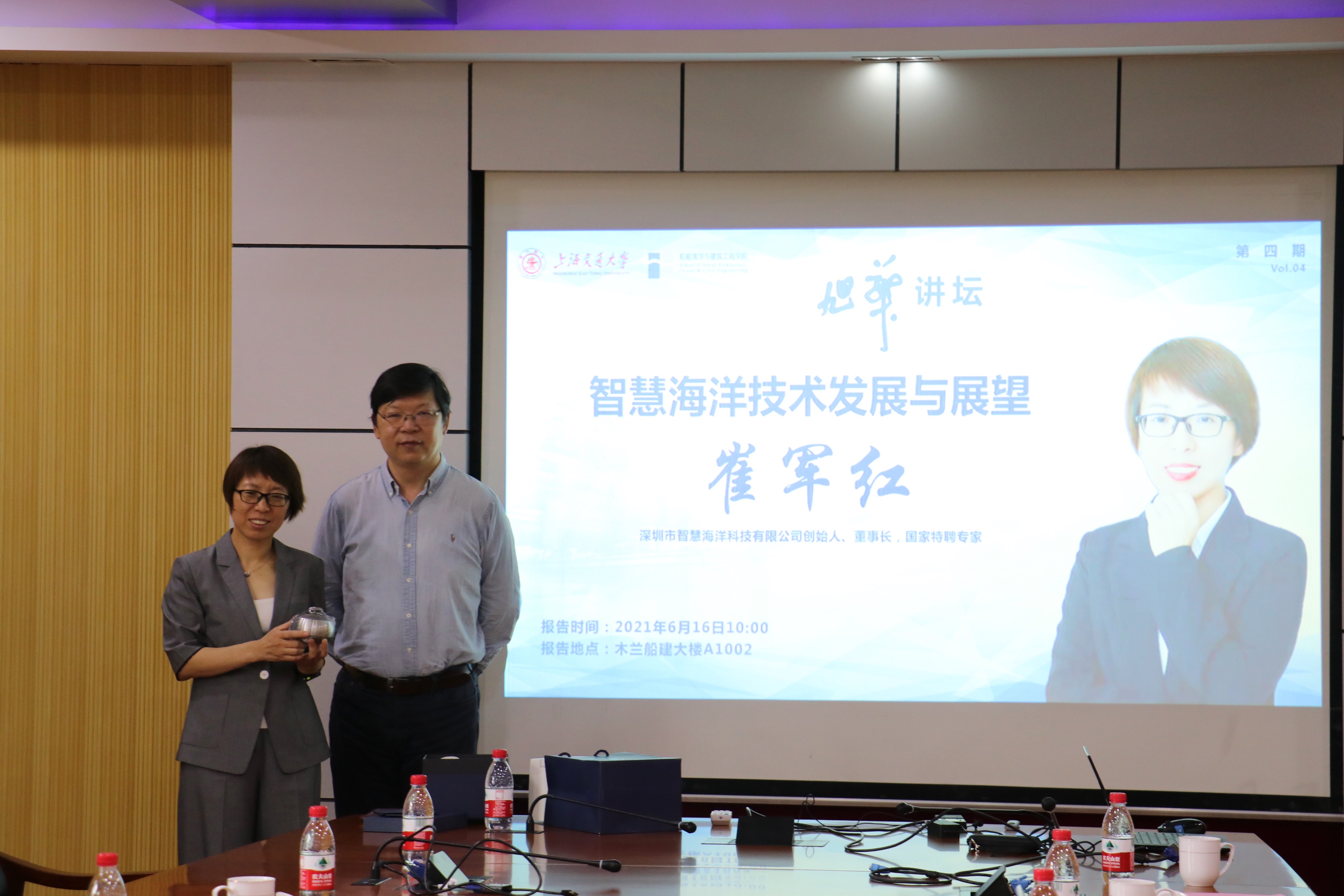 聘任仪式后,崔军红教授做客成人漫画 “旭华讲坛”。她以 “智慧海洋技术发展与展望”为主题为在座的师生做了一场精彩的报告。报告中,崔军红教授从智慧海洋的重要意义出发,详细分析了产业需求,回顾了海洋技术的发展历程。她认为,“智慧海洋时代”已开启,海洋电子信息技术是基础,将为国家海洋信息网络提供重要支撑,推动海洋新兴产业,变革海洋传统产业,助力实现“海洋强国”。报告内容丰富精彩,呈现了未来智慧海洋时代的发展重点和趋势,全院师生受益匪浅。会后各位与会教授表示将和崔军红教授做深入的技术交流,开展实质性合作,推动学校的“大海洋”行动计划。