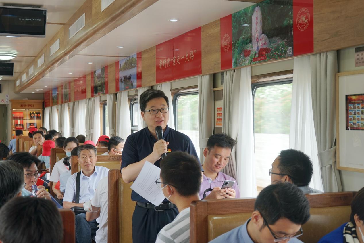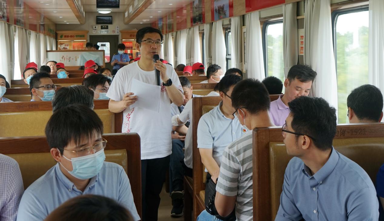 中国铁路上海局党委宣传部部长陈万钧在致辞中表示,上海交大和中国铁路的发展有着深厚的历史渊源,交大是中国铁路事业的见证者、建设者和创造者,几代交大人作出了卓越贡献。陈万钧介绍了“南湖·1921”红色列车的由来、运营情况和社会反响,结合学习习近平总书记七一重要讲话精神,充分肯定了联合主题党日活动的意义。陈万钧还勉励“知行”社会实践团队牢记习近平总书记在七一重要讲话中对青年的教诲,知行合一,不负韶华,不负青春,在新时代建功立业,书写壮丽人生篇章。