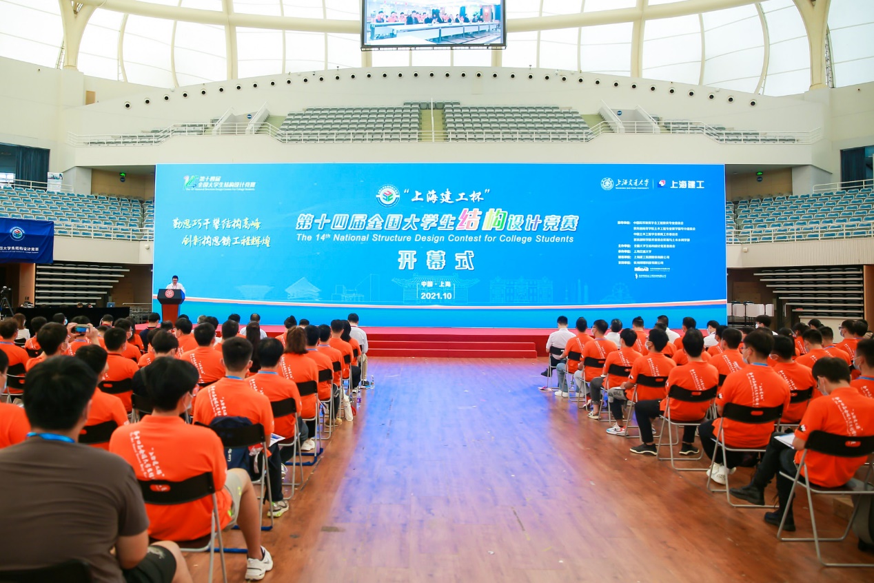 2021年10月14日下午,“上海建工杯”第十四届全国大学生结构设计竞赛开幕式在成人漫画 闵行校区霍英东体育中心顺利举行,并同步设置线上会场。此次大赛由中国高等教育学会工程教育专业委员会、教育部高等学校土木工程专业教学指导分委员会、中国土木工程学会教育工作委员会和教育部科学技术委员会环境与土木水利学部指导,由全国大学生结构设计竞赛委员会主办,成人漫画 承办,上海建工集团股份有限公司冠名。北京迈达斯有限公司、北京筑信达工程咨询有限公司、杭州邦博科技有限公司为大赛支持单位。