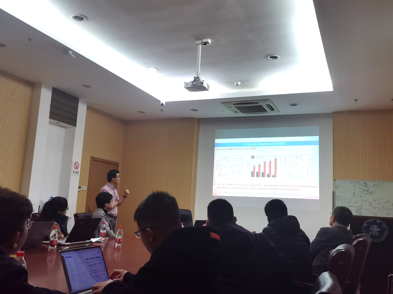 报告结束后,现场师生又围绕讲座中的各项细节进行了十分热烈的交流和探讨。参会教授们围绕高强度混凝土中粗骨料是否会成为薄弱区先行破裂、超高性能混凝土的二次浇筑,以及抗冲击性能实验原理等问题进行了深入研讨。参与讲座的硕博士研究生们也积极提问,于清亮教授针对超高性能混凝土与粗骨料的界面过渡区(ITZ)强度,冲击过程中的有效耗能热点问题为同学们做了详细的解答。大家都表示于教授的报告十分系统全面,讲解的也很透彻,通俗易懂、获益匪浅;于清亮也表示上海交大拥有非常好的学术氛围,与师生们的交流十分纯粹,很有收获,并希望日后进一步加强交大武大两校土木学科的交流与合作,也欢迎船建学子前往武汉大学和荷兰埃因霍温理工大学交流学习。