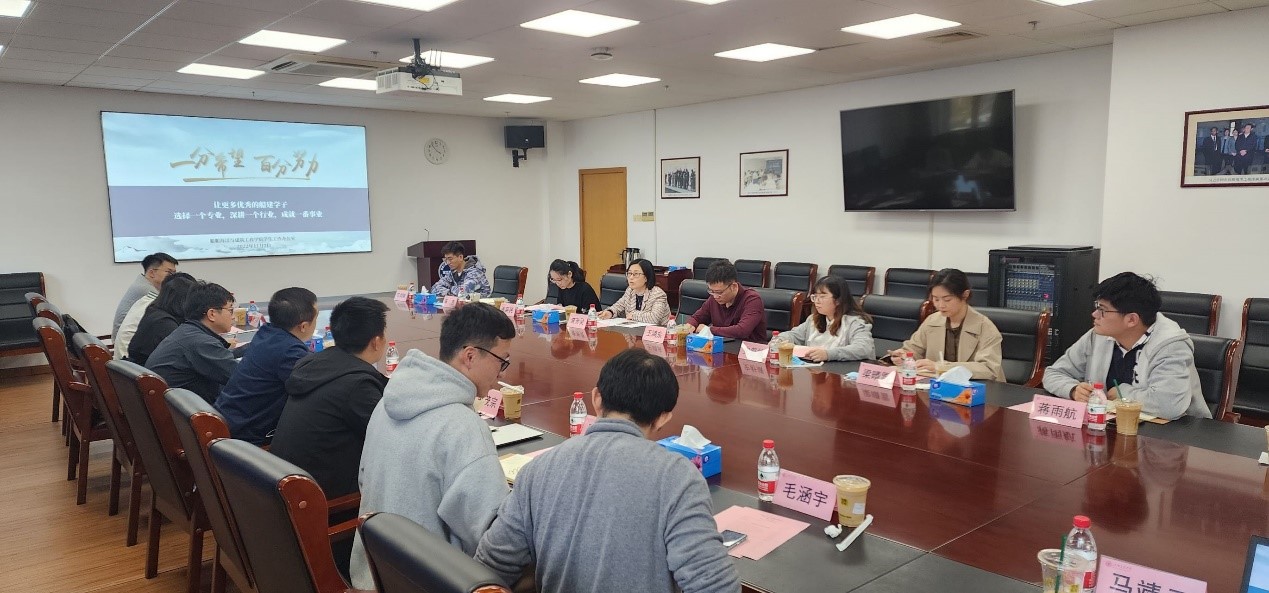 王鸿东介绍了学院学生工作整体情况。从学院整体发展概况展开,介绍学院学生基本情况、学工队伍情况以及学院“总师型人才”的培养目标,依次对党建思想引领、学生科创建设、学生事务以及学生就业进行介绍,就学院行业实践、创新人才培养体系、就业引导等特色工作进行了重点汇报,同时深度分析目前存在的问题并提出改进建议。