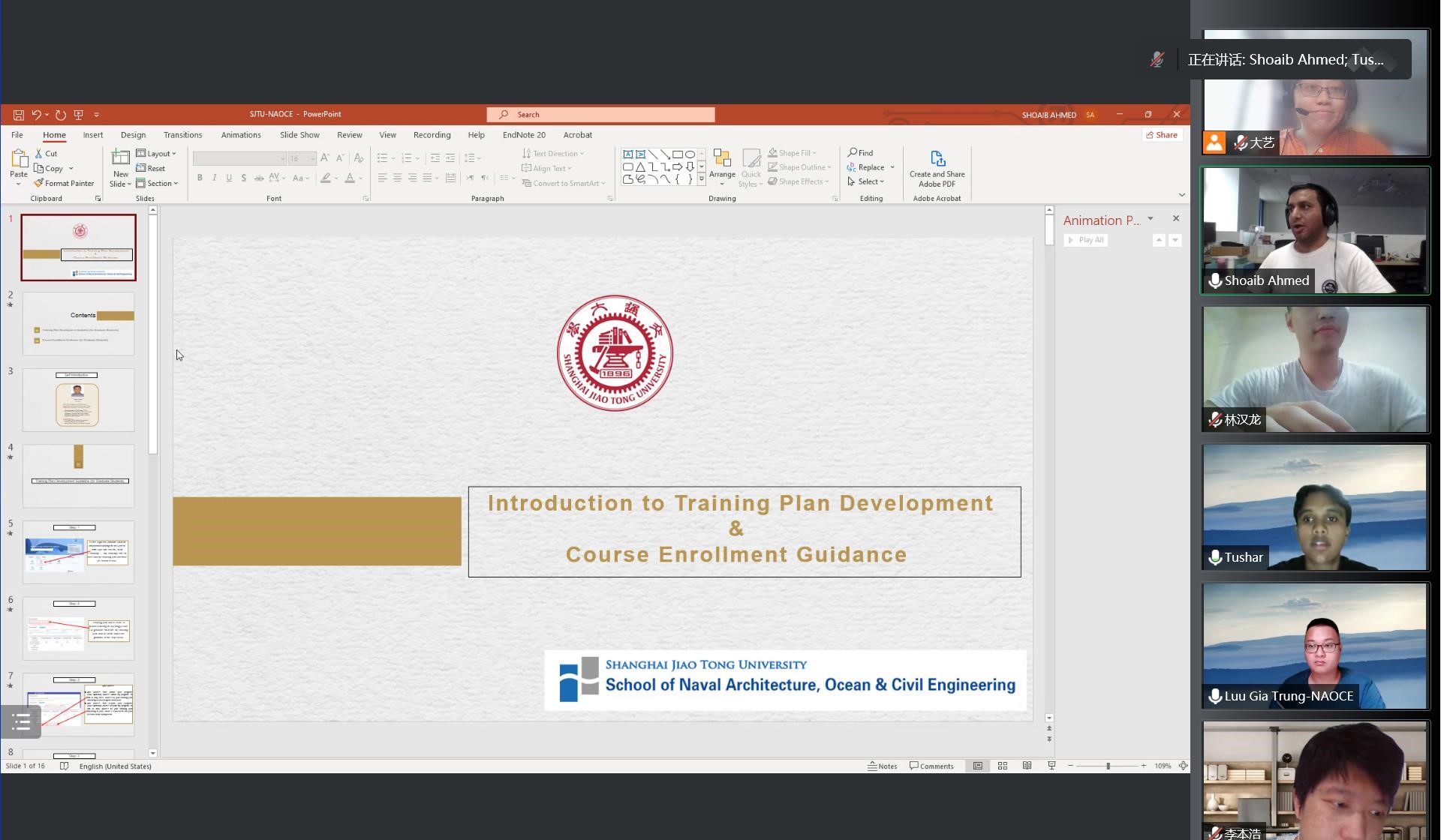 2022年9月14日,成人漫画 研究生教务办高艺、学工办学生辅导员马靖云组织2022级研究生留学生新生开展线上专业教育活动。