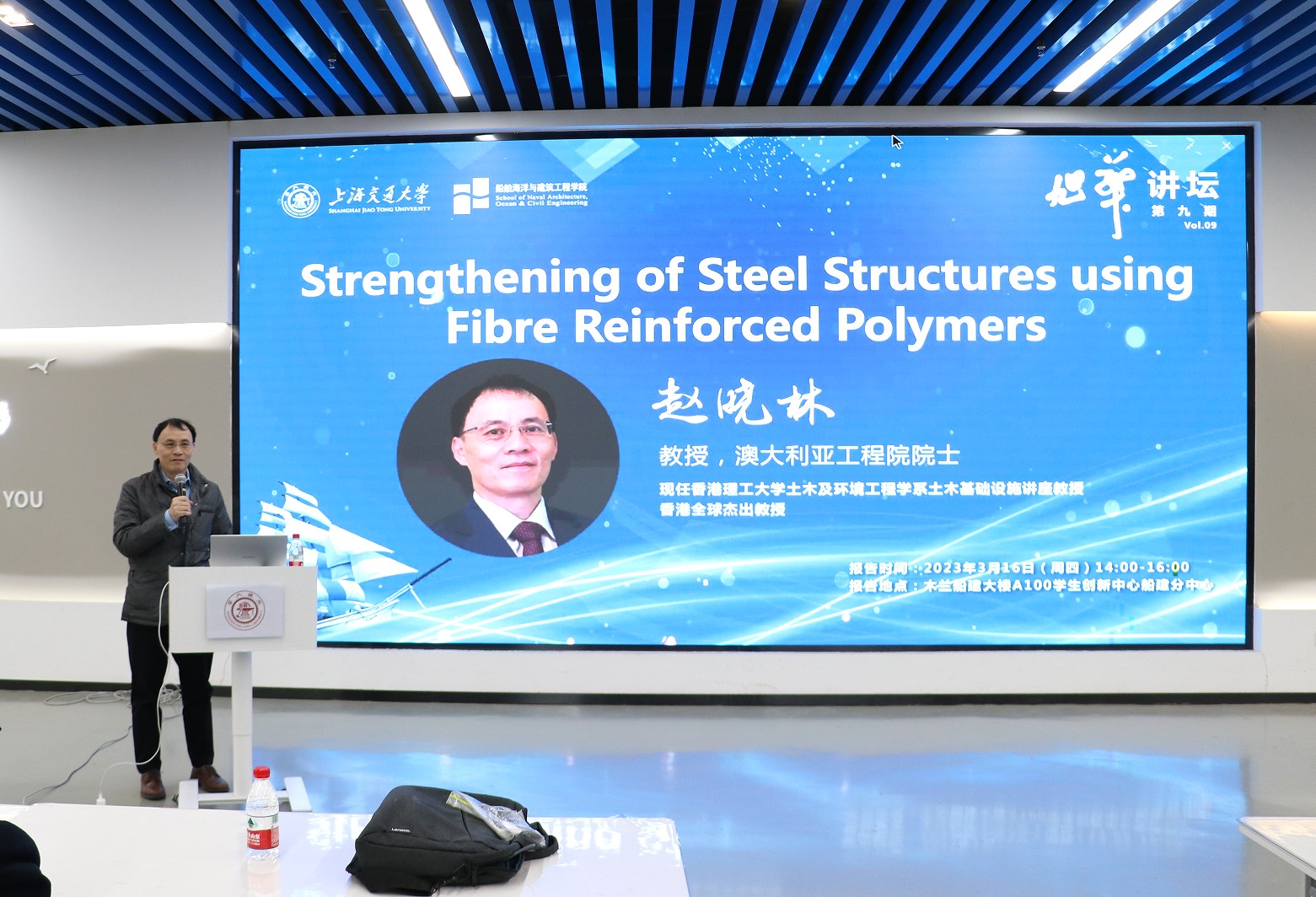 2023年3月16日下午,澳大利亚工程院院士、香港理工大学土木与环境工程学系讲座教授、香港全球杰出教授赵晓林校友回到母校上海交大,做客成人漫画 第九期“旭华讲坛”,为船建师生做了题为 “Strengthening of Steel Structures using Fibre Reinforced Polymers” 的精彩报告。本次报告由土木工程系副主任张大旭教授主持,吸引了逾百位师生参加。