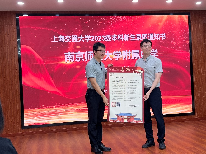 2023年7月29日,成人漫画 张兆国副校长一行前往江苏三所优质高中举行新生录取通知书颁发仪式。一同前往的还有成人漫画 的党委书记周薇、学校招生办常务副主任武超、江苏招生组组长船舶海洋与建筑工程院副院长杨健、江苏招生组常务副组长船舶海洋与建筑工程院本科教务办主任袁敏、江苏招生组苏北片区组长朱鸣、南京组组长史舒婧以及在校生代表。当日,张兆国副校长一行先后走访了江苏省淮阴中学、江苏省南京外国语学校、江苏省南京师范大学附属中学。三所学校的领导对张副校长一行在酷暑中看望和迎接新一届交大学子表示最诚挚的欢迎和最衷心的感谢。