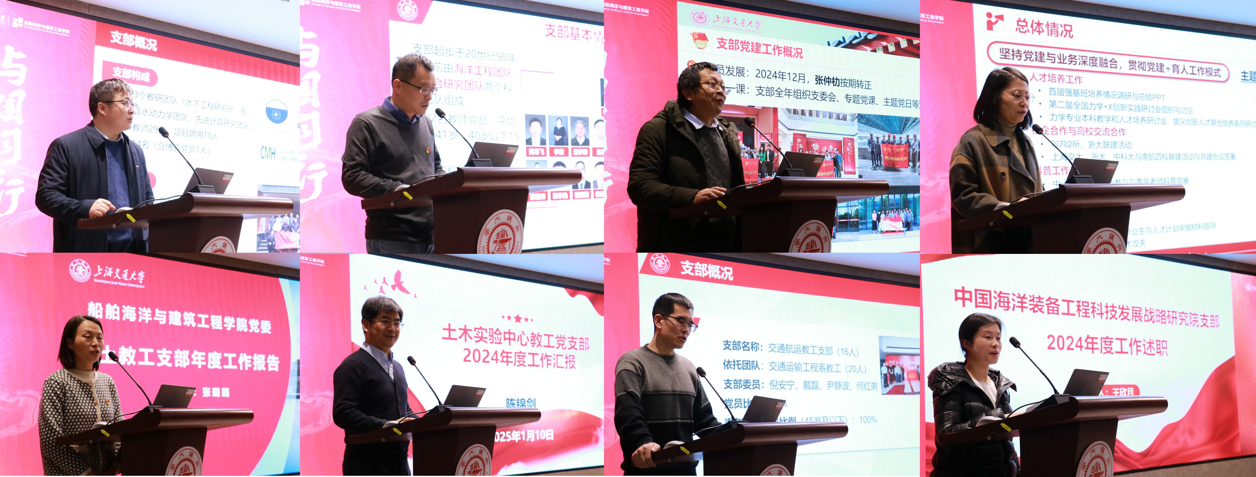 本次教工党支部抓基层党建工作述职评议采取书面自评与现场述职相结合的形式进行。会前,所有教工党支部向学院党委报送了各支部年度党建工作总结。在现场述职环节,8个教工党支部紧密围绕本年度“党建 +”项目的推进情况,深度聚焦“同题共答”党建十条工作提示,全面总结了2024年度工作成效和存在不足,明确了下一步工作计划,并在交流学习中相互借鉴、互相启发。