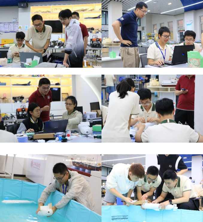 在教学环节,林志良教授深入浅出地讲解了水下机器人技术原理,刘积昊老师则带领学员系统学习流体力学与工程应用知识。在实践操作中,学员们完成了3D打印、结构组装、水密性测试等关键工序,最终实现自主研发水下机器人的成功入水。竞技环节更是精彩纷呈,各团队在水下竞速、精准作业等项目中展开激烈角逐,展现了出色的工程素养和创新思维。