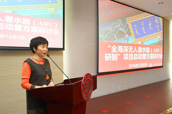 孙清在致辞中对上海交大在深海技术发展领域所取得的成绩表示高度的肯定,她希望项目团队人员能够全力以赴,认真做好解决关键技术问题与不断验证方面的工作,勇于挑战,攻克难关,通过全海深无人潜水器(ARV)研制,缩小与发达国家在深海海洋技术研究中的差距,有效支持国家投入全球海洋利益和资源争夺。