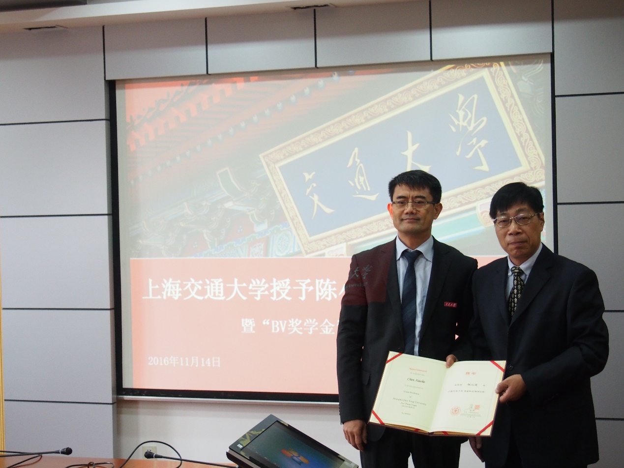 11月14日上午,成人漫画 授予陈小波客座教授仪式暨“BV奖学金”颁奖仪式在木兰船建大楼A1002室举行。BV总部国际合作部部长、亚太区深水技术中心总经理陈小波博士,BV上海先进技术研究中心技术总监周才民,成人漫画 党委书记张卫刚,副院长万德成,党委副书记杨建军,以及四名获奖同学出席了此次颁奖仪式。会议由万德成主持。