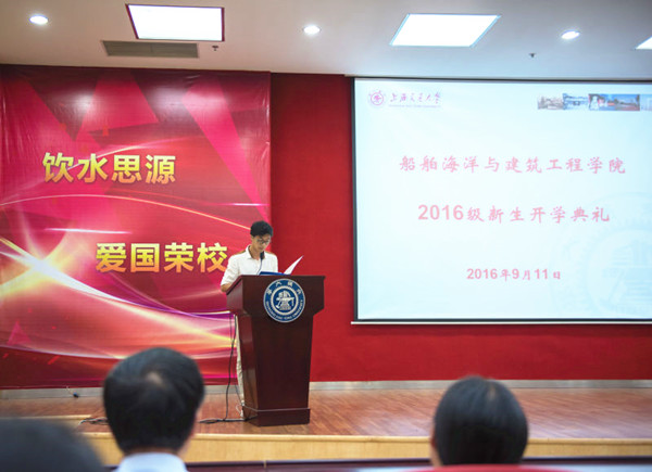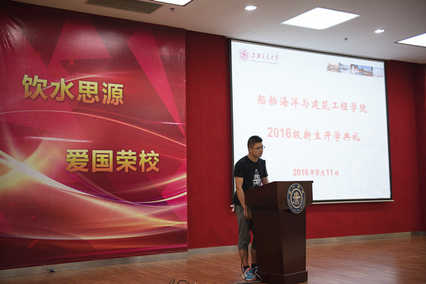 2015级土木工程专业硕士研究生范岩旻和2014级船舶与海洋工程专业本科生于特分别代表研究生和本科生老生发言。范岩旻曾获得首届创青春杯全国大学生创业大赛金奖,他从学习、科研和实践三个方面向研究生新生分享了自己的经验。团委学生会主席于特作为本科生老生代表,勉励新生不要害怕尝试和探索,勇于担当,在看似平凡的学习生活中追求卓越。