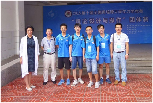 我校代表队之所以取得了优良的成绩,一方面是由于我们的队员在比赛中心理素质过硬,思维活跃,动手能力强;另一方面是因为我校老师和同学做好了充分的准备。为准备好团体赛,我校工程力学系由朱本华、于洪洁和刘铸永等三位老师组成面试小组,从获奖同学中选取了六位同学作为团体赛的候选队员。然后由刘铸永老师设计题目,带领他们到实验室进行解决问题思路和动手能力的培训,并从中观察选拔正式参赛队员。经过多次训练,在最终参赛队员选拨的过程中,不是以个人赛的成绩,而是以动手能力、团队协调、逻辑思考和比赛经验为考核指标。最后选出四名正式参赛队员,在赛前继续进行了为期一周的强化训练。