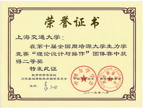 交大学子获“第十届全国周培源大学生力学竞赛” 团体赛二等奖[图]