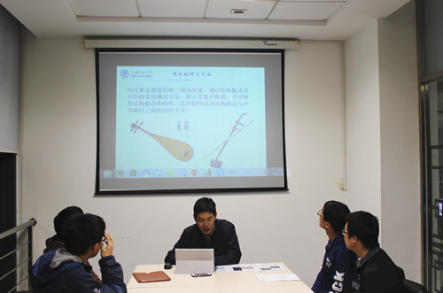 梁夫友首先对心脑血管研究及实验室的相关情况进行了简单介绍,并就此次的大创项目《外部冲击条件下脑动脉瘤内血流特征及其破裂风险研究》和PRP项目《脑动脉瘤内的血流动力学特征及其关联因子研究》进行了详细介绍。黄淑萍则通过生动详细的PPT讲解,让同学们对《区域道路交通网络抗震脆弱性研究》、《基于随机相应面的桥梁抗震易损性计算》两个项目有了深入全面的认识,同时她也提到了项目本身的难度挑战和对数理基础的较高要求,使同学们对项目的困难有了充分的心理准备。余征跃和邓小伟针对《乐器二胡的发声特性实验研究》和《乐器琵琶的发声特性实验研究》两个项目,通过中西乐器的比较,形象生动地向同学们解说了二胡、琵琶等古典乐器的发声原理以及该项目的研究方法,并阐述了该项目的优势和意义所在。
