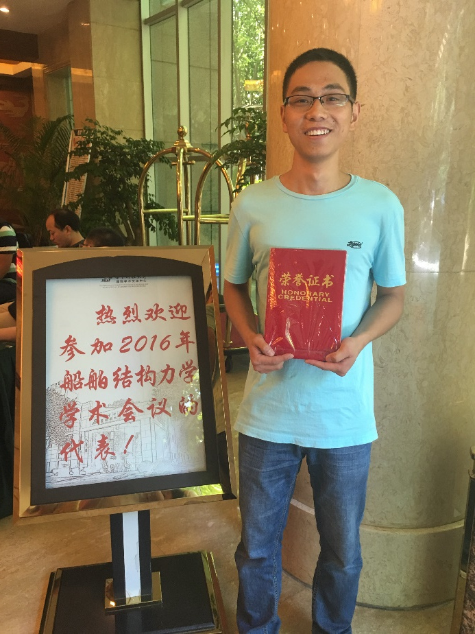 本次会议,船舶力学学术委员会还专门设立了“船舶力学优秀论文奖”,以此表彰和鼓励从事船舶与海洋工程领域研究的青年学生,并将获奖论文推荐优先在《船舶力学》上发表。成人漫画 硕士生艾勇在导师万德成教授的指导下撰写的论文《平台纵摇运动对风机气动性影响的数值分析》受到了与会专家好评,从近100篇论文中脱颖而出,荣获“2016年船舶力学学术会议”优秀论文奖。