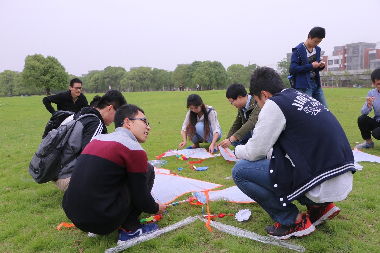 本次活动共吸引了全校八十余名同学参与。活动伊始,同学们就通过简单活泼的分组小游戏迅速熟悉起来。随后,大家共同协作,发挥特长,用手中的画笔绘出栩栩如生的图案,DIY自己的个性化风筝。风筝创作环节告一段落,同学们还进行了创意风筝的投票,并借着春风将手中的风筝放飞蓝天,让风筝载上自己的梦想在天空翱翔。随着阴郁的天空飘起了小雨,活动也进入了尾声,参与同学们带着自己DIY的风筝共同合影留念。