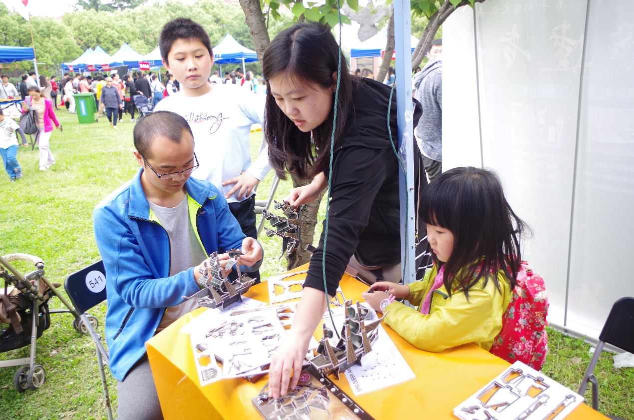 船建研究生会以“文化交流”为主题,寓教于乐,开展了知识竞赛、船模制作和趣味套圈等小游戏,吸引了大量同学和小朋友们参与,成为交大人节最热门的活动之一。这些富有趣味和互动的游戏向小朋友们传递了有关船舶、海洋和建筑的趣味知识,也激发了大家的求知欲望和动手热情。