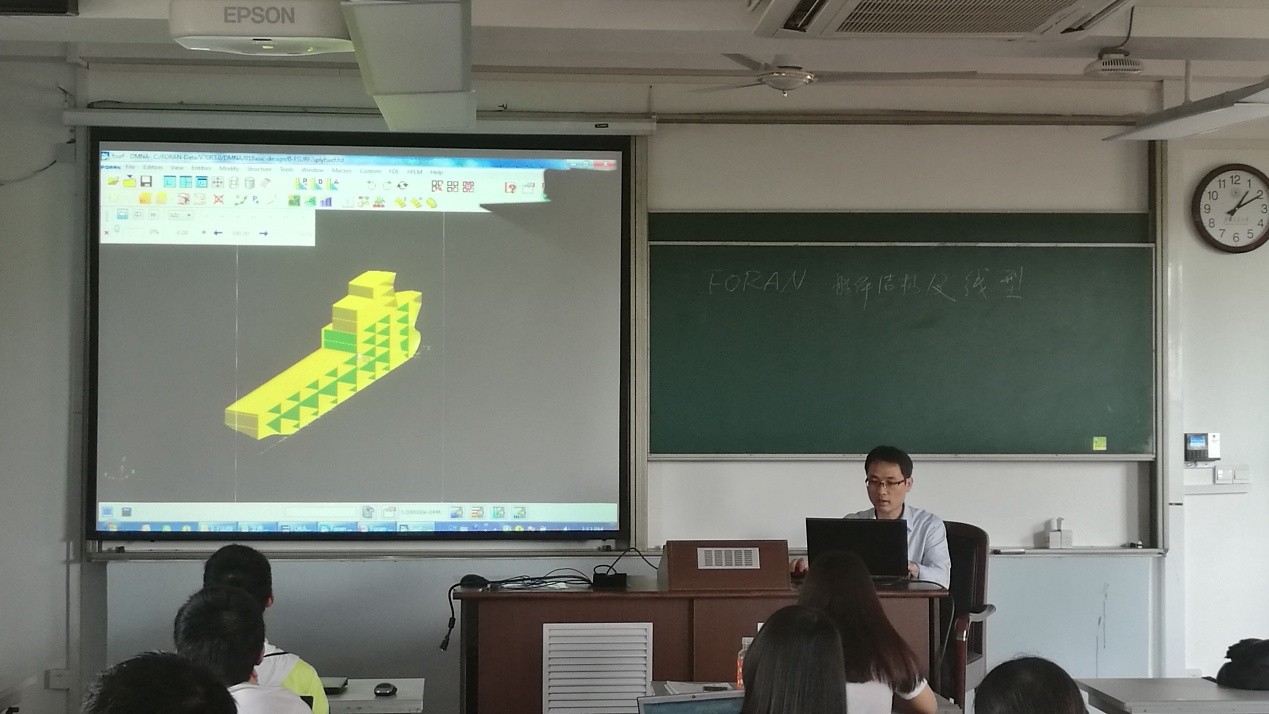 为使同学们初步了解船舶设计流程的概念,增强对船体复杂型表面、船体结构的直观认识,5月23日,成人漫画 “船体构造与制图”课程举办了“FORAN 船体结构与线型生成”主题讲座,赛尼尔公司高级工程师周信林应邀主讲。学院船舶与海洋工程、轮机工程和国际航运专业的所有学生参与了讲座。