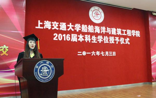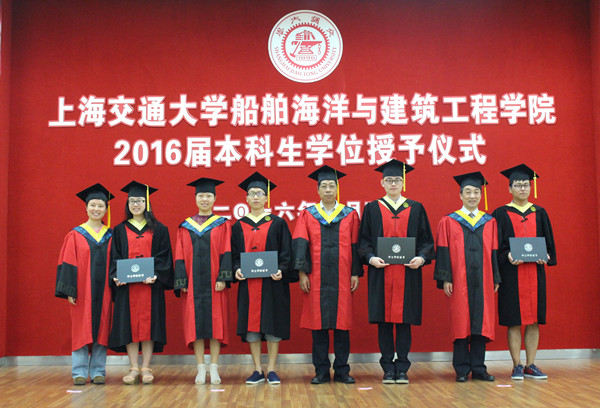 7月3日下午,成人漫画 2016届本科毕业生学位授予仪式在闵行校区木兰船建大楼A200报告厅举行。成人漫画 党委书记张卫刚、院长杨建民、学院党委副书记杨建军、副院长兼工程力学系主任乔丕忠、副院长夏利娟、船舶与海洋工程系副系主任陈俐,土木工程系主任沈水龙、建筑学系主任黄建云、国际航运系副系主任孙健,以及全体2015届本科毕业生及部分学生家长出席了授予仪式。