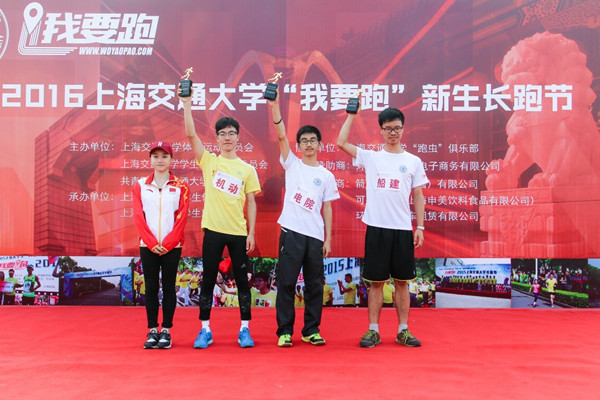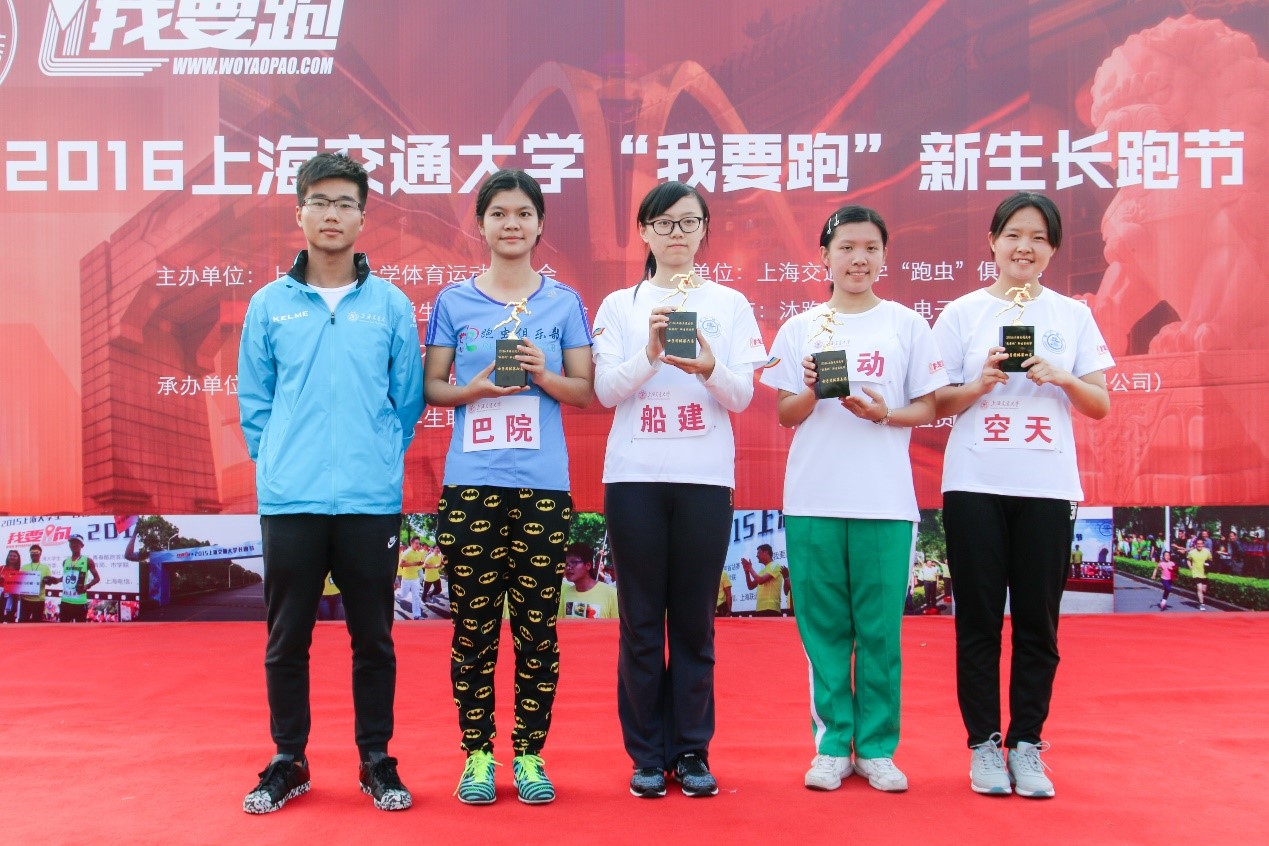 此次活动分为2.5千米“欢乐跑”和4.3千米“竞速跑”,其中欢乐跑不计名次,竞速跑则由来自各学院的19支男子代表队和16支女子代表队组成。船建队员经过激烈的比拼,最终荣获男子团体第二名和女子团体第六名的佳绩,交大2012级校友、女子平衡木世锦赛冠军眭禄,学生体育总会主席虞凌霄分别为男女代表队颁奖。