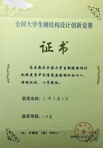 土木工程系王曈、陆依晖、王胤淇、胡行、熊吴越,建筑学系杨慧琳、施理壮组成的学生代表队,在土木工程系宋振森老师、建筑学系刘士兴老师和博士后王斐亮的指导下,以优异表现在大赛50支队伍中脱颖而出,以第4名的成绩获得大赛二等奖。这也是上海交大代表队首次参加该项赛事。