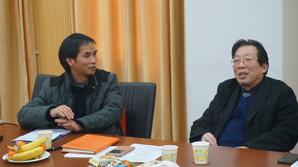 下午1点,参会代表陆续完成签到并在A211进行会客,久未逢面的沈惠申教授与学生们都难掩重逢的激动之情,彼此热情交流着这些年来各自的发展和生活情况,气氛融洽欢快,为新年增添许多暖意。