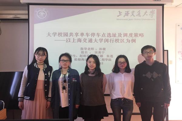 闵行校区为例”、胡镇笠团队的作品“基于微观仿真的早晚高峰时期大学道路公共化研究与实证”及罗逸仁团队的作品“集装箱‘路改水’奖惩机制---集疏运网络优化减轻交通拥堵与碳排放”荣获一等奖,张紫轩团队的作品“应用卷积神经网络来预测交通网络流量”荣获二等奖。以上四支队伍将一起代表上海交大参加5月于同济大学举办的第十二届全国大学生交通科技大赛。