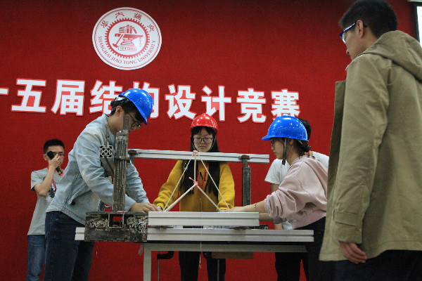 、机械与动力工程学院、电子信息与电气工程学院等院系,徐汇光启创新基地以及交大附中共计五十多支队伍。参赛选手制作的塔楼结构模型需接受4级不同荷载的测试考验 ,评委会根据理论方案、模型工艺、模型质量、模型测试和违规罚分得出最终成绩。